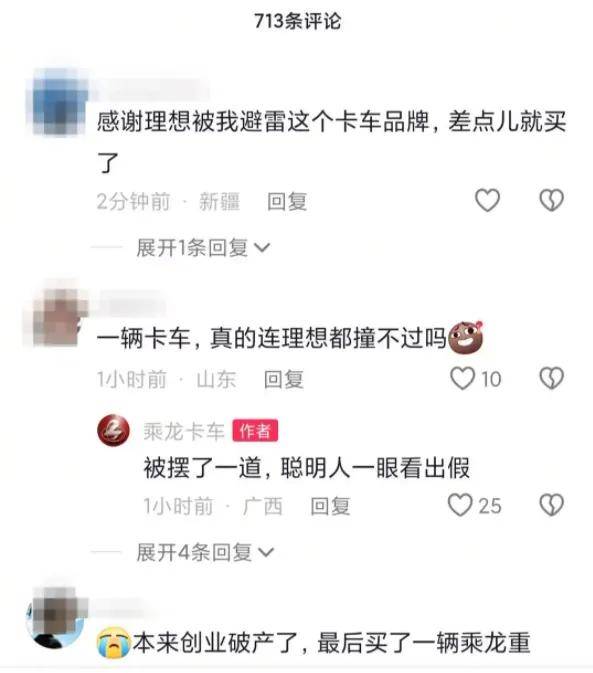 發布會過后,不少網友前往乘龍卡車官方抖音號留言。面對網友的質疑,乘龍卡車官方抖音回復網友表示法務部門正在處理中。從留言中,也能看出乘龍卡車對于該測試是不認可的,其稱:“被擺了一道,聰明人一眼看出假。”“不知道背后導演想啥,實際碰撞你覺得會怎么樣?”,這些回復為這一場“鬧劇”再添上了一把火。