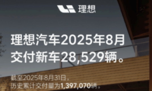 據理想官方發布,8月銷量為2.85萬輛,比去年同期少賣了1.96萬臺,同比下滑41%,環比下降7%,銷量呈現下滑與市場競爭激烈有關。