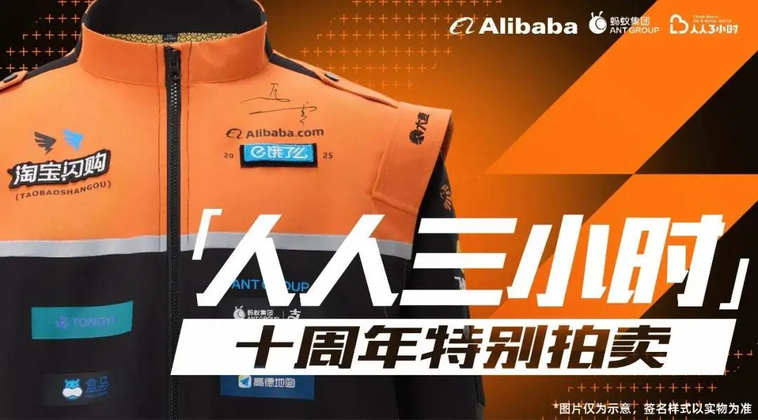 9月5日,淘寶官方發文稱,在“人人3小時”十周年之際,102套“馬老師、吳泳銘、蔣凡、吳澤明等簽名的城市騎士專屬制服”公益拍賣,拍賣將于9月10日12點開始,義賣所得善款,將全部投入“橙意計劃”,為騎士提供更好的激勵和保障。