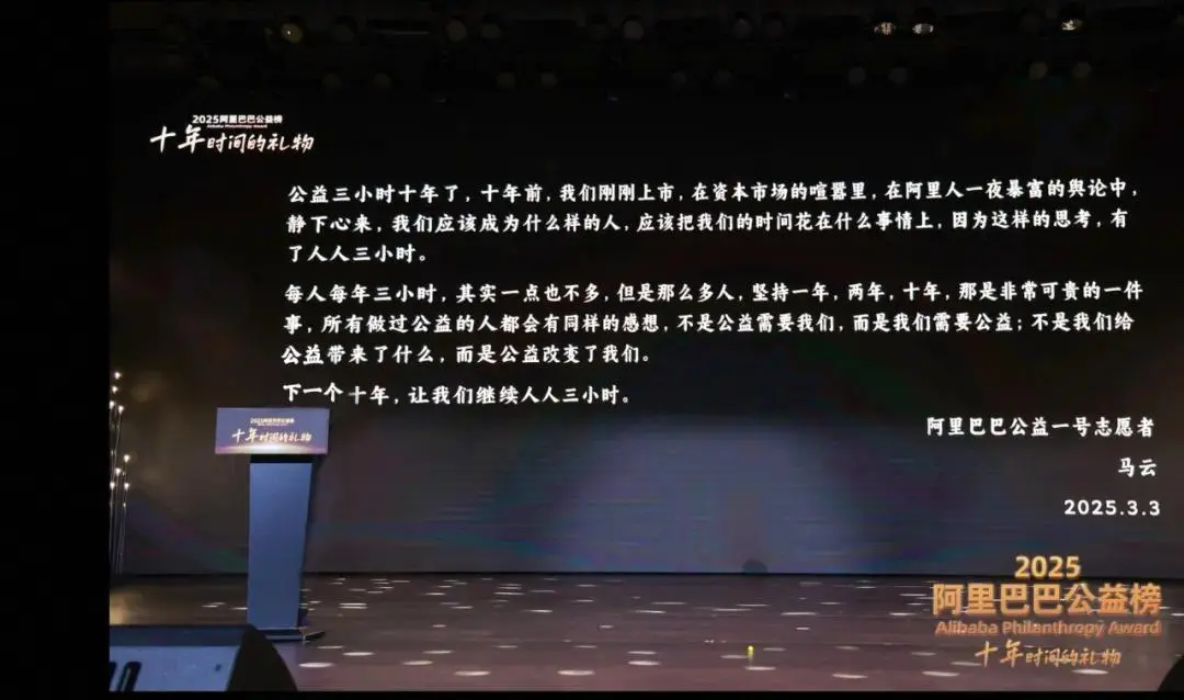 據了解,“910”是阿里巴巴26歲的生日,也是“人人3小時”十周年的日子。十年前的這一天,馬云給全體阿里人寫了一封信:公司員工每人每年拿出3小時做公益。
